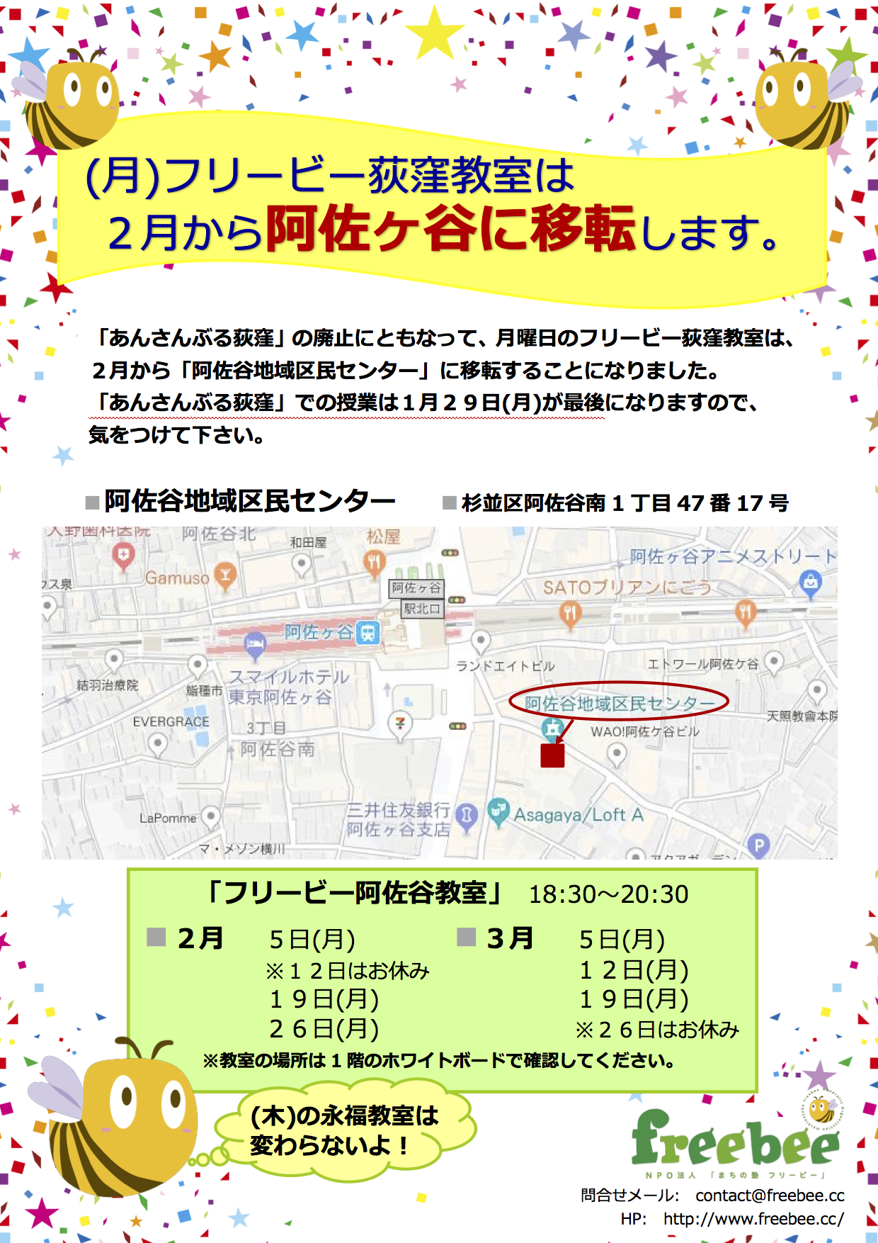 月曜日の荻窪教室「阿佐ヶ谷区民センター」へ移転